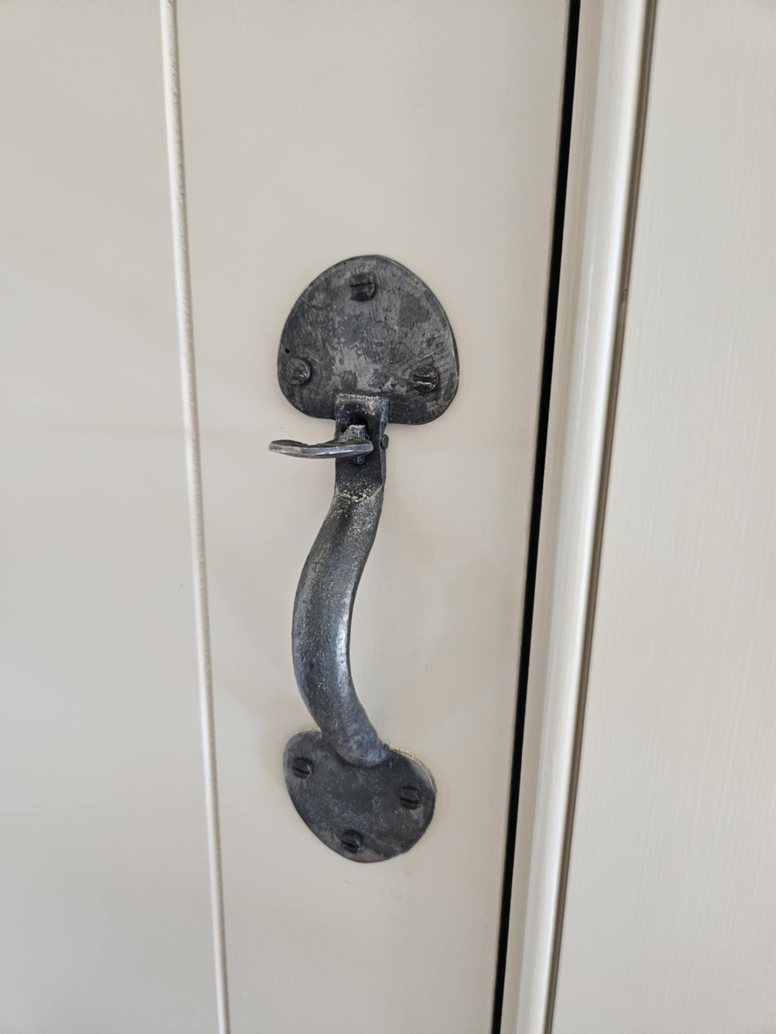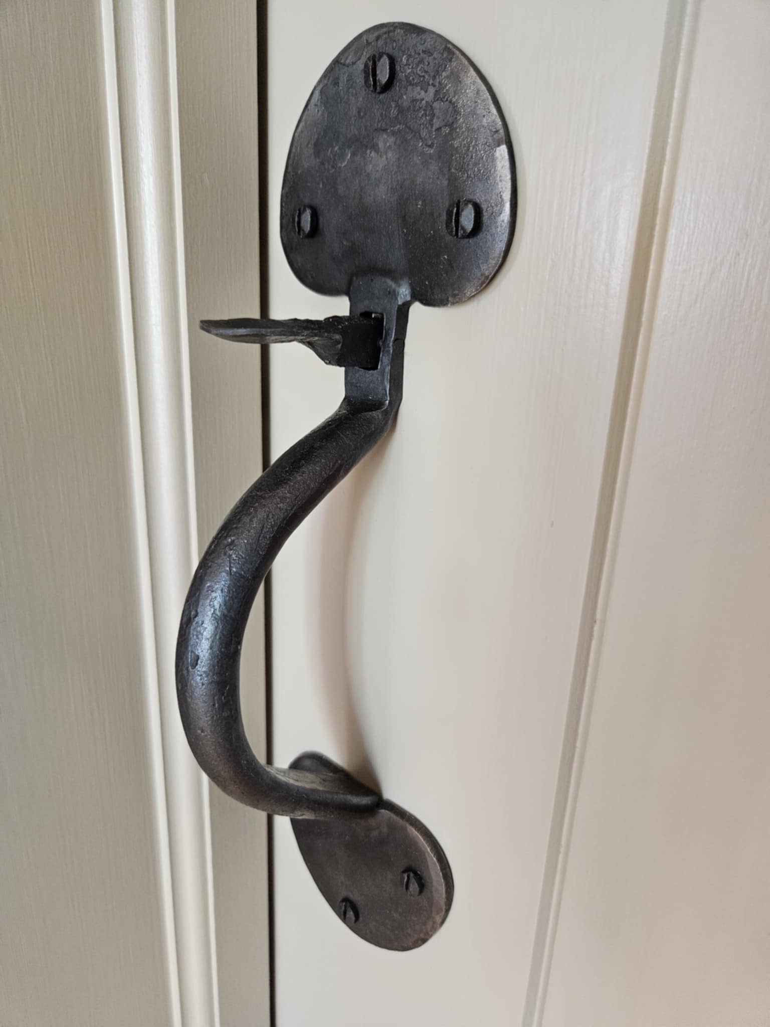 This handcrafted latch is a perfect finishing touch for any interior space needing a touch of rustic sophistication and quality craftsmanship.
